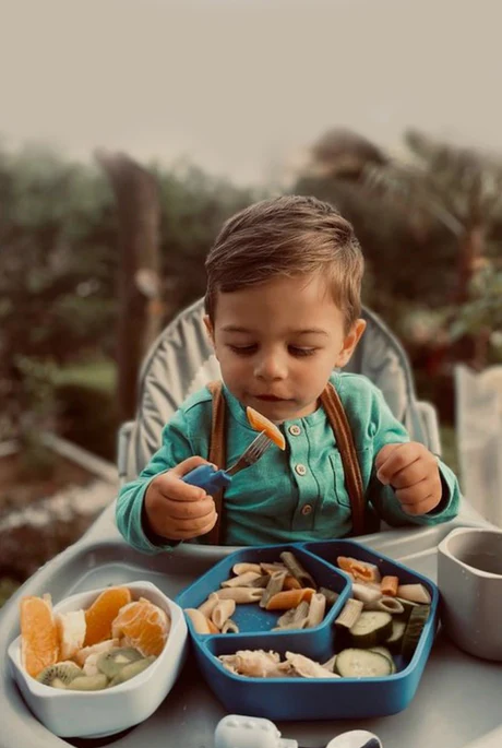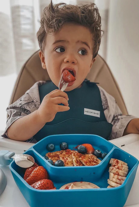 Az apró dinoszaurusz fogantyútervezése vonzza a kisgyermekek érdeklődését az evés iránt, és szórakoztatóvá teszi az étkezést.